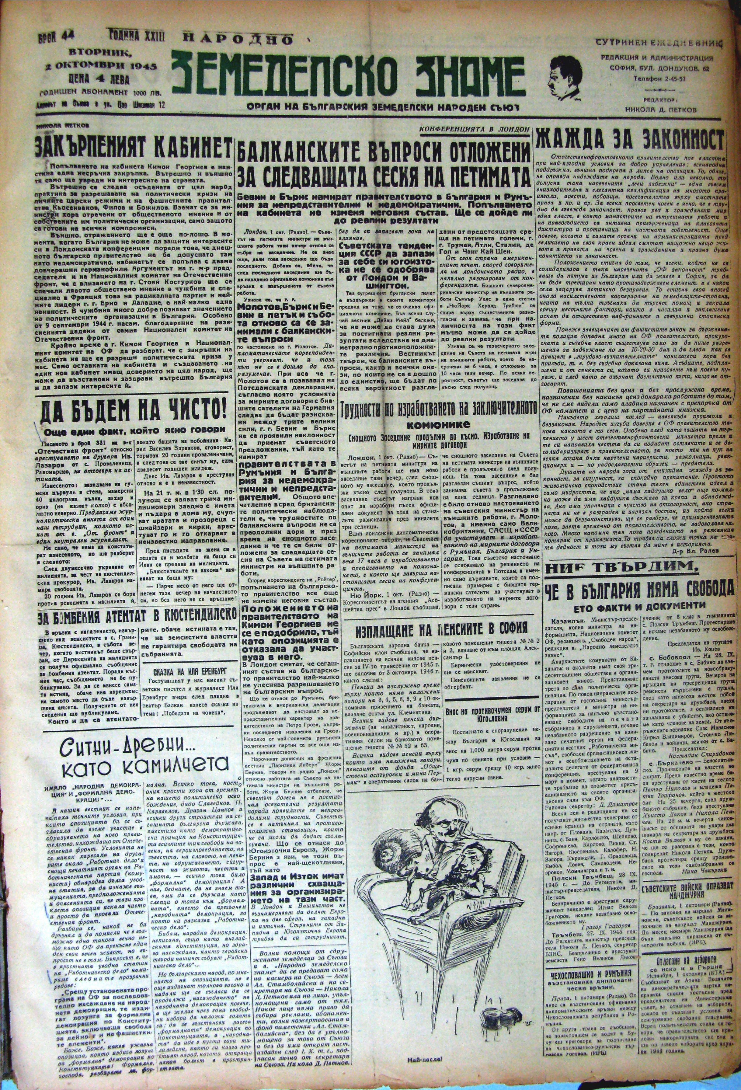 Newspaper "People's Agrarian Banner" (Narodno Zemedelsko ...