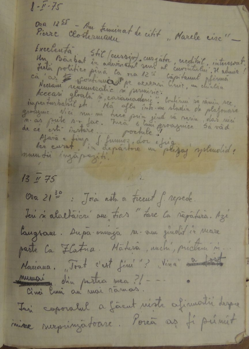 Monoran, Ion. Jurnal din armată, 1974-75. Manuscris