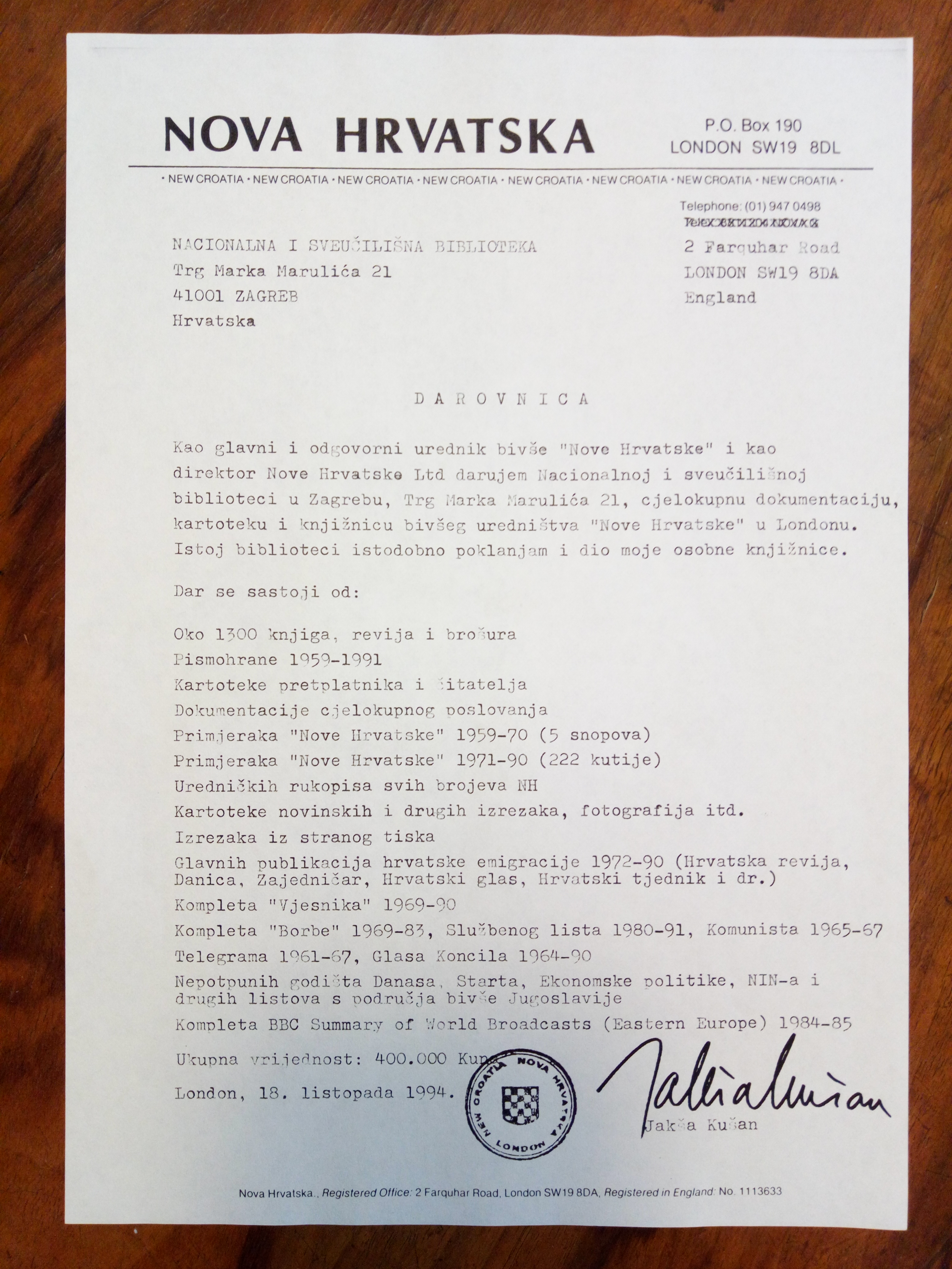 The last issue of the CADDY bulletin contained a recapitulation of the work of both the CADDY and the bulletin itself. Although the last issue appeared in November 1992, sometime later, at the beginning of March 1994, it was announced that the work of the CADDY had ended, which included the publication of the bulletin. This all happened against the backdrop of the definitive disintegration of the Yugoslav state and the war in its former territory. Such a turn of events signalled a defeat for the ideals championed by Mihajlo Mihajlov and Rusko Matulić as the main leaders of the project, who believed in the possibility of maintaining Yugoslavia in a democratized form.